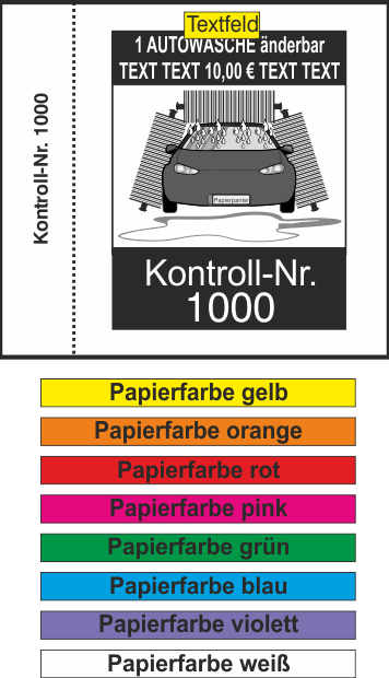 Einheit: 10 Blocks à 100 Blatt = 1000 Autowaschkarten