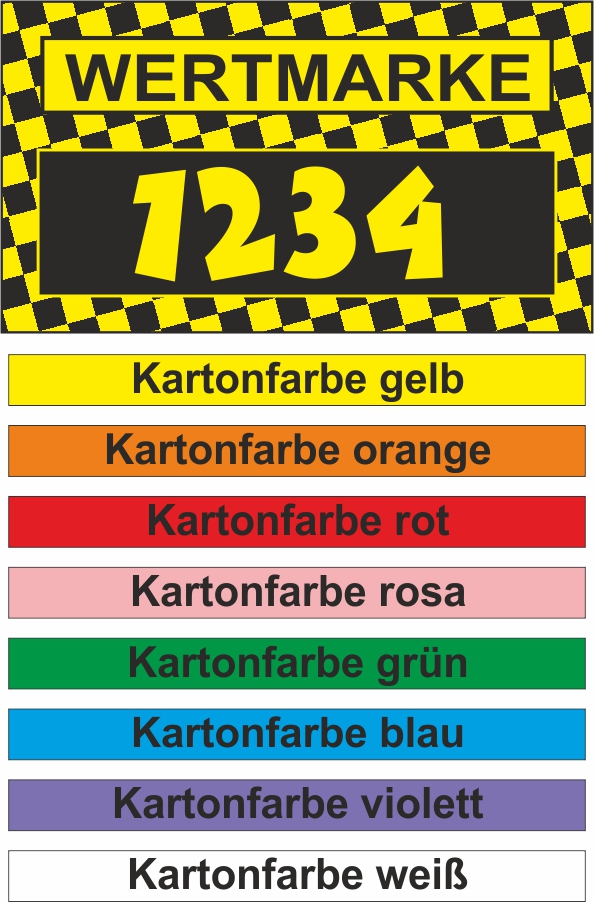 Nummerierung: ab Nr. 0001 fortlaufend durchnummeriert (je Farbe)