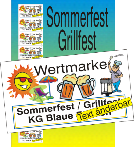1000 Wertmarken "Sommerfest - Grillfest", Text änderbar