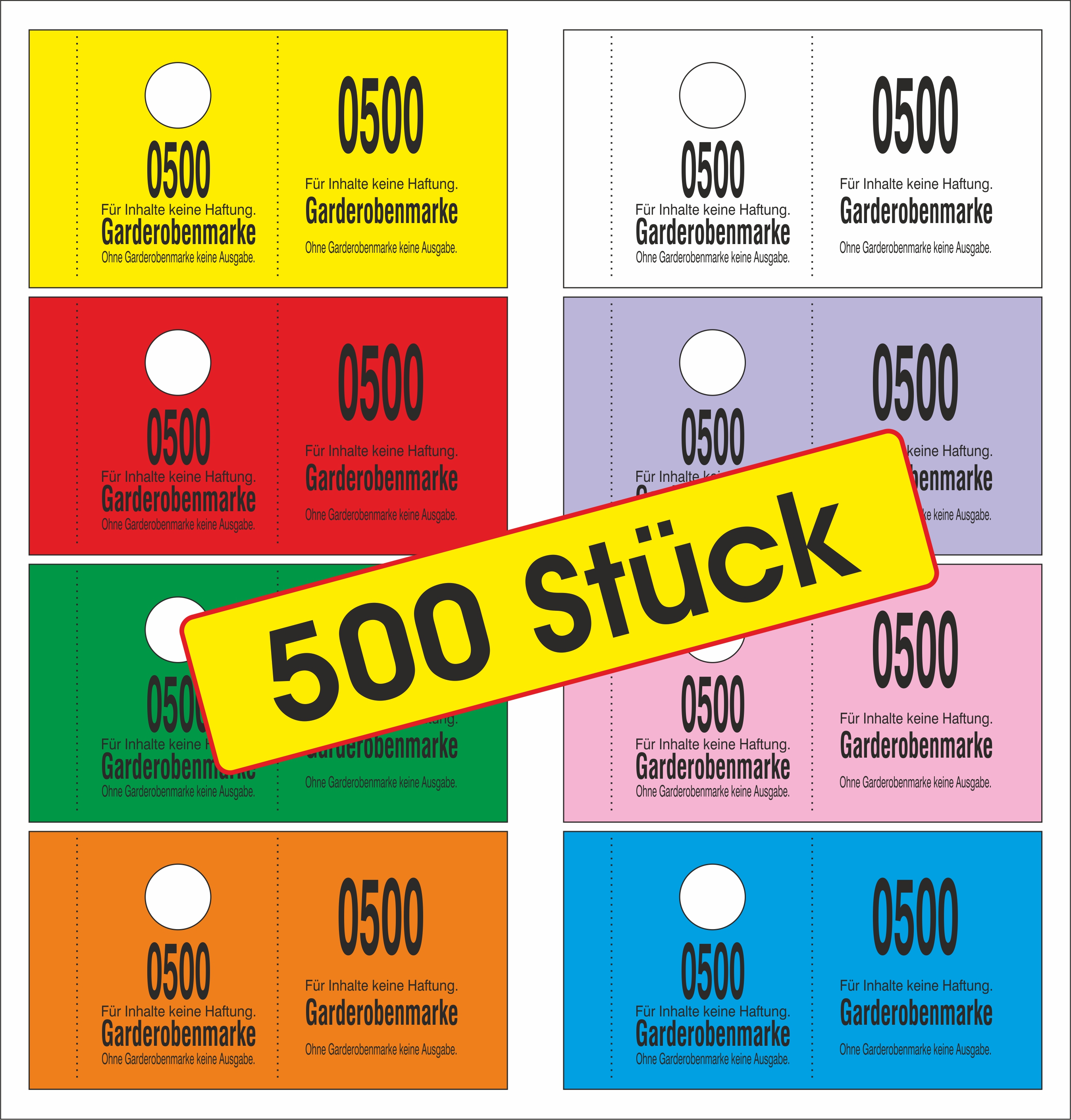 500 Garderobenmarken "neutral", 14 mm Bügelloch, Nr. 0001-0500