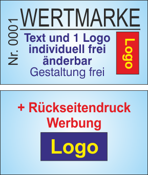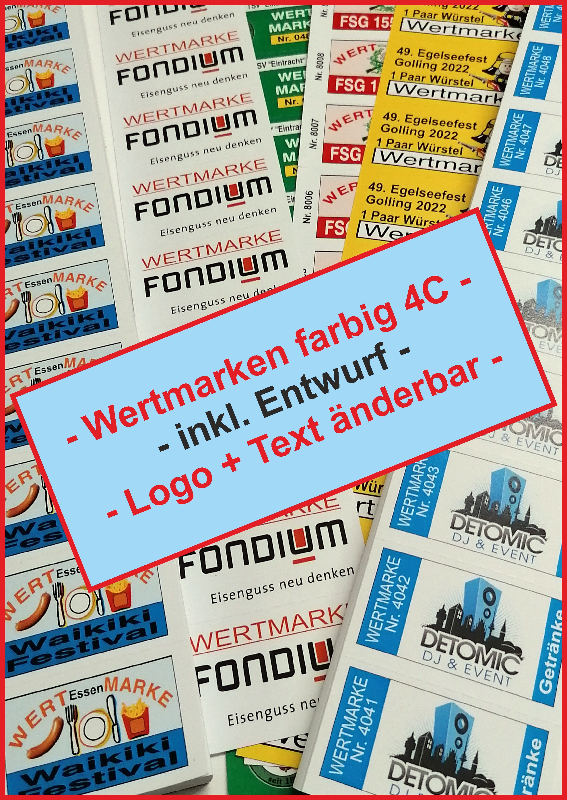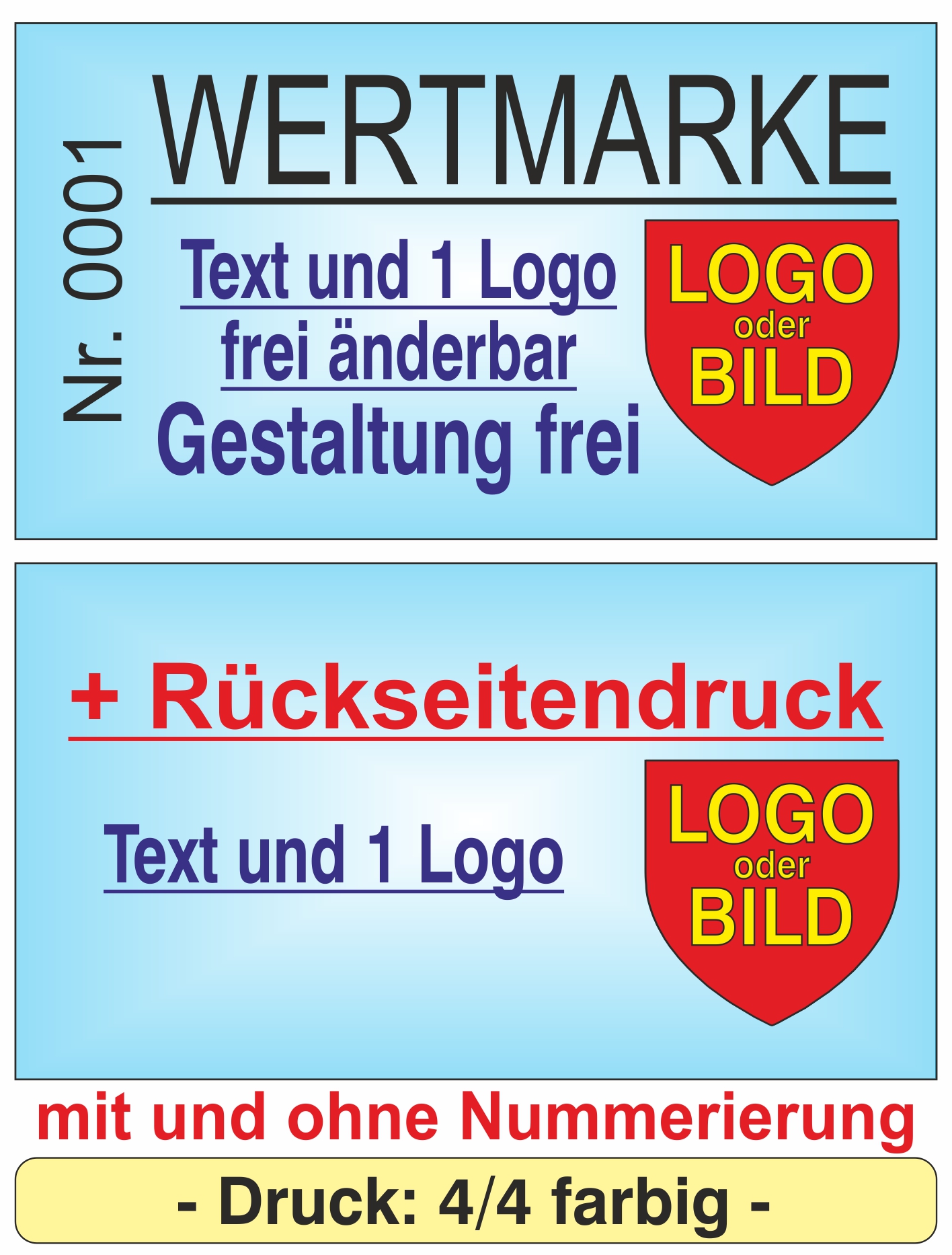 1000 Wertmarken 4/4 "doppelseitig farbiger druck"- mit Text + Logo [[- inkl. Gestaltungsservice -]]