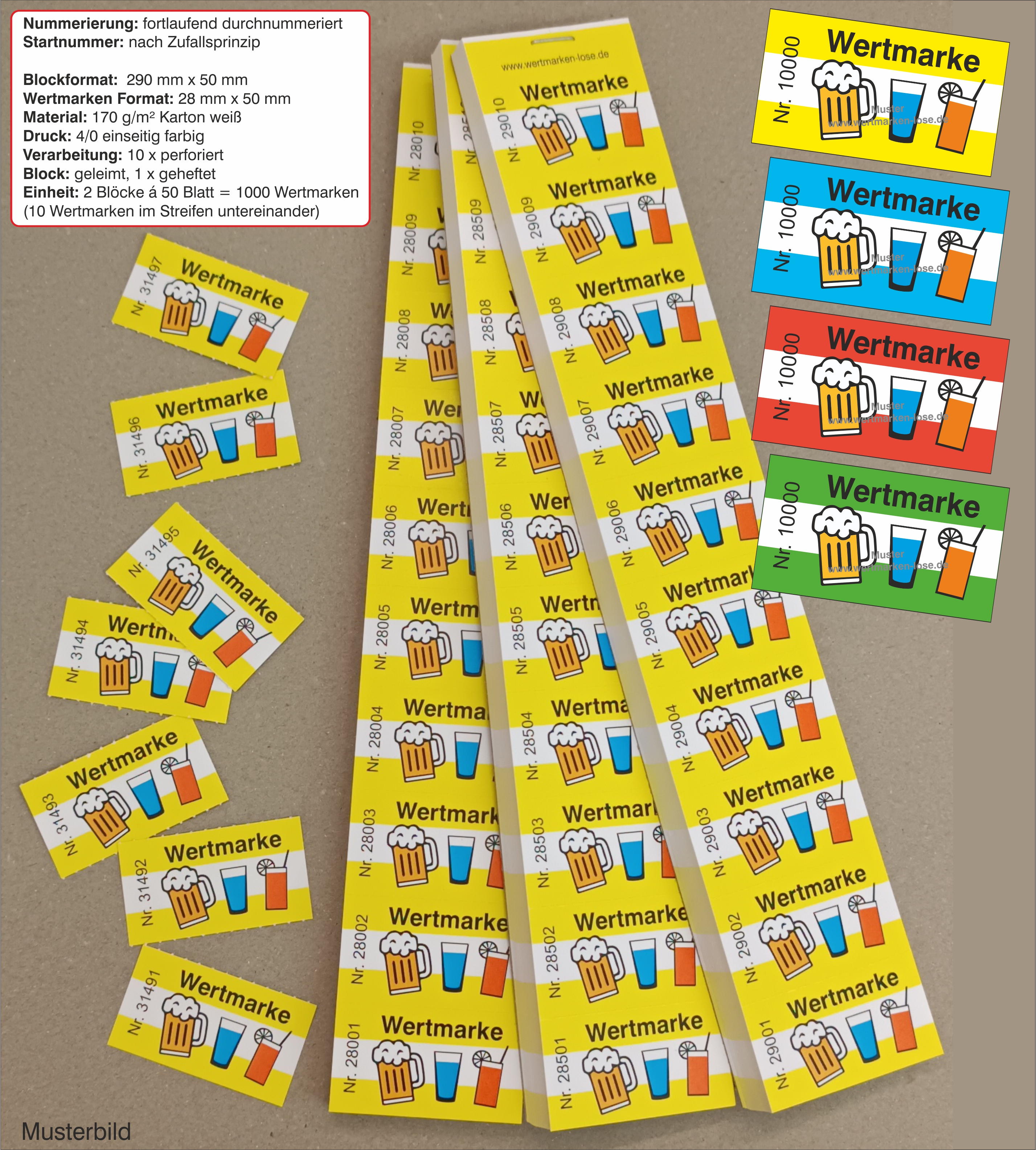 1000 Wertmarken "3 Gläser" mit Nummerierung